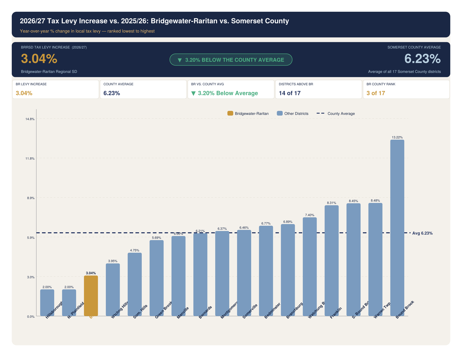 Following a rigorous analysis, the BRRSD administration proposed a budget with a 3.04% tax levy increase, ranking BRRSD among the lowest in Somerset County. The district eliminated 17 full-time positions while still moving forward with full-day kindergarten and the district-wide grade reconfigurations planned for September 2026.